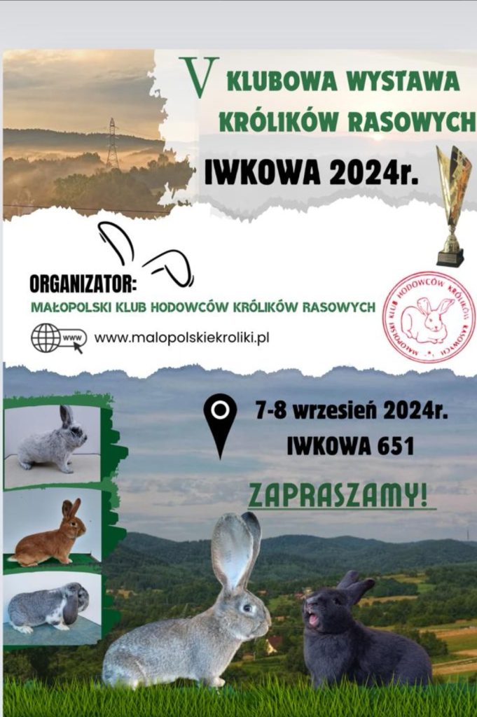 29 lipca 2024 admin V KLUBOWA WYSTAWA KRÓLIKÓW RASOWYCH – Iwkowa 7-8.09.2024 – dokumenty Witam,Poniżej znajdą Państwo dokumenty do pobrania – PDFKarta zgłoszeń – pobierzRegulamin wystawy – pobierz O autorze admin